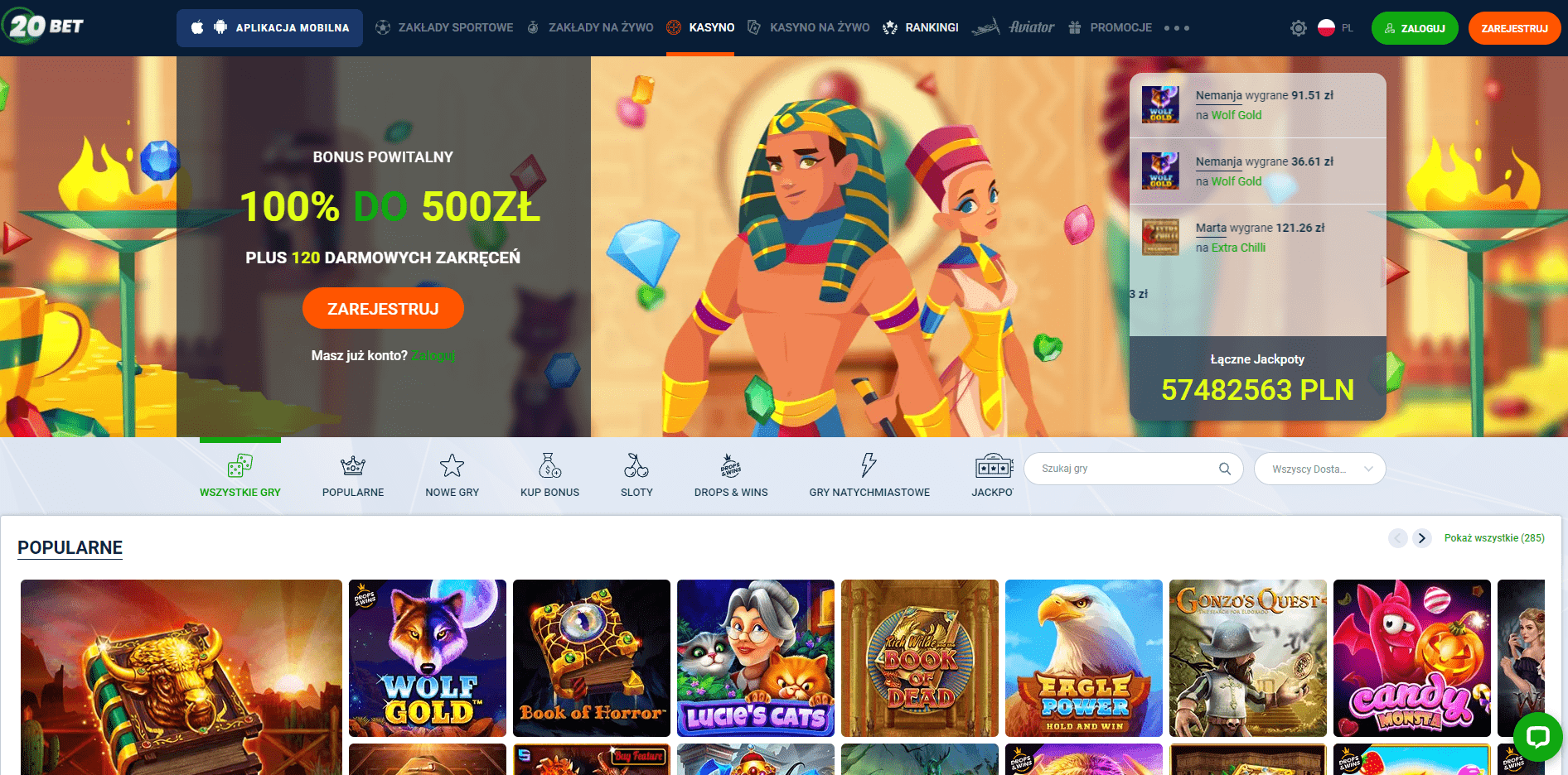20 Bet to rozbudowana strona, na którą składają się zakłady bukmacherskie, kasyno online oraz kasyno live. Nie ma więc możliwości, abyś nie znalazł na niej tego, czego szukasz. Kasyna online i na żywo są dobrze zaopatrzone, dzięki umowom z dużymi i cenionymi producentami gier. Co więcej, 20 Bet oferuje także system bonusów, z których możesz skorzystać zarówno jako gracz początkujący, jak i doświadczony.