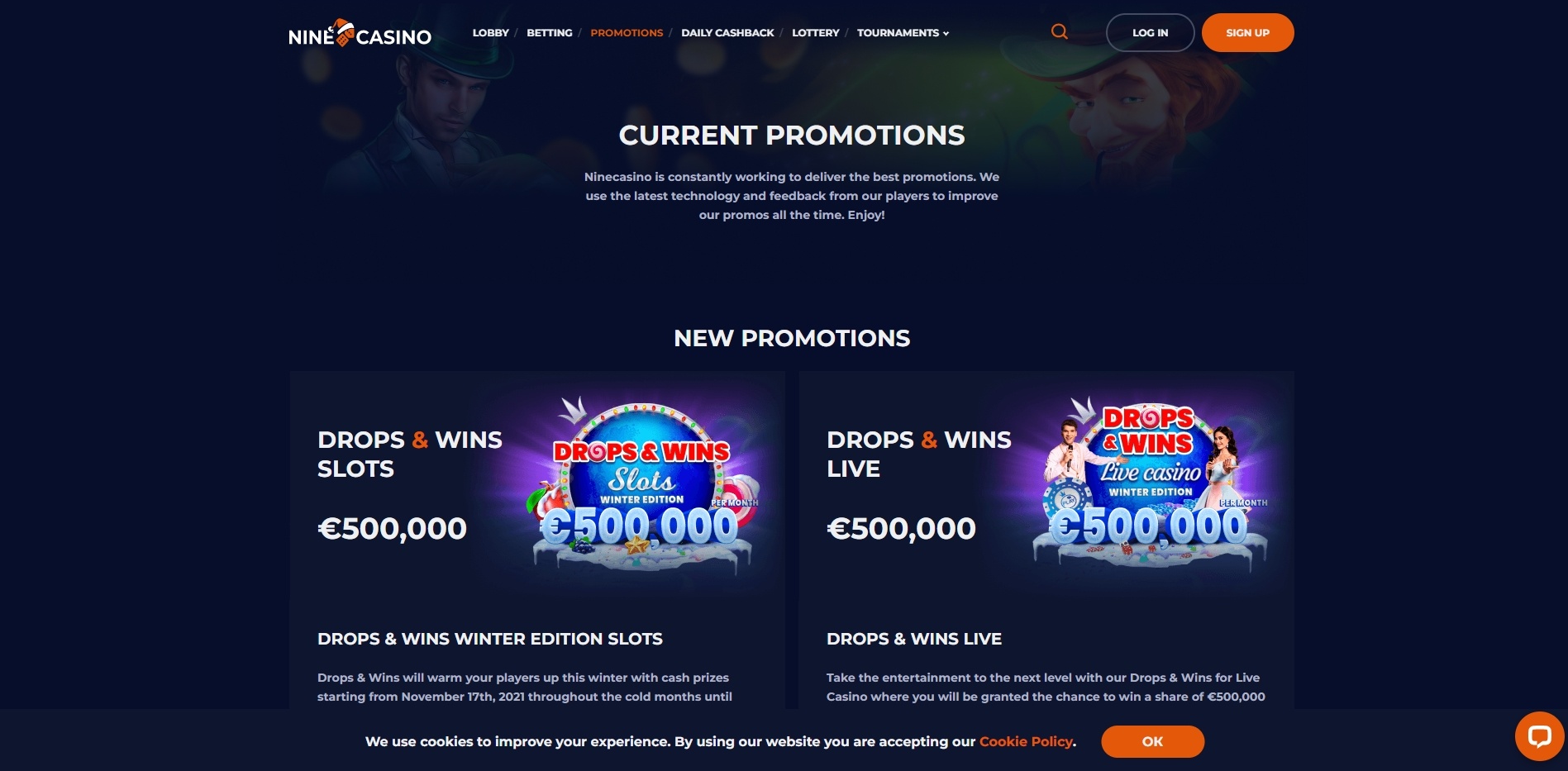 Kasyno posiada przyjemną pod względem graficznym oraz intuicyjną, względem obsługi stronę internetową. Dlatego też w Ninecasino rejestracja przebiega szybko i bezproblemowo.