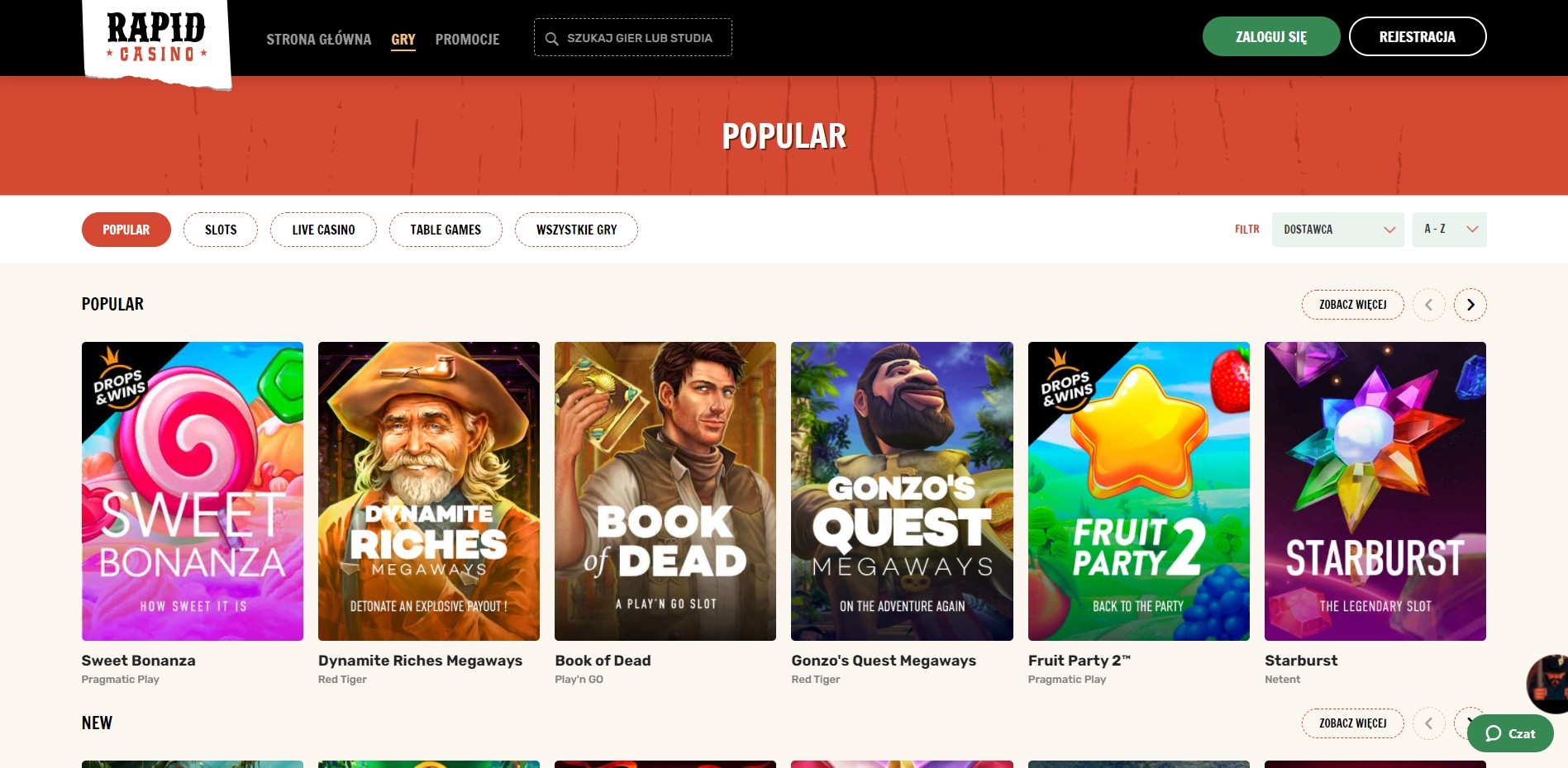 Wracając do tych najpopularniejszych, to użytkownicy wybierają przede wszystkim w Rapid Casino sloty Sweet Bonanza i Fruit Party 2 od Pragmatic Play, słynne Book of Dead i Reactoonz od Play’n Go, Extra Chilli od Big Time Gaming, Dynamite Riches Megaways i Gonzo’s Quest Megaways od Red Tiger czy też Starburst of NetEnt.